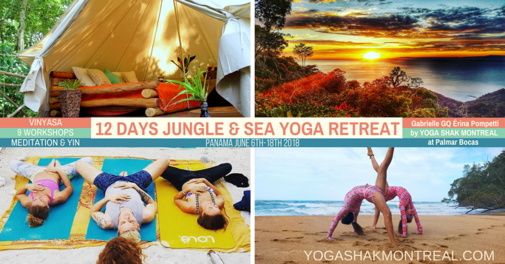 It’s with great joy that I share with you our upcoming Jungle & Sea Yoga Retreat! I’m partnering with my fave human Gabrielle Gq. in collaboration with Yoga Shak Montréal to invite you all for 12 days of meditation, yin & Vinyasa Yoga, specialized practice deepening workshops (inversions, acro, live your yoga, ect…), hiking, surfing, and more at Palmar eco lodge in Bocas del Toro,Panama.