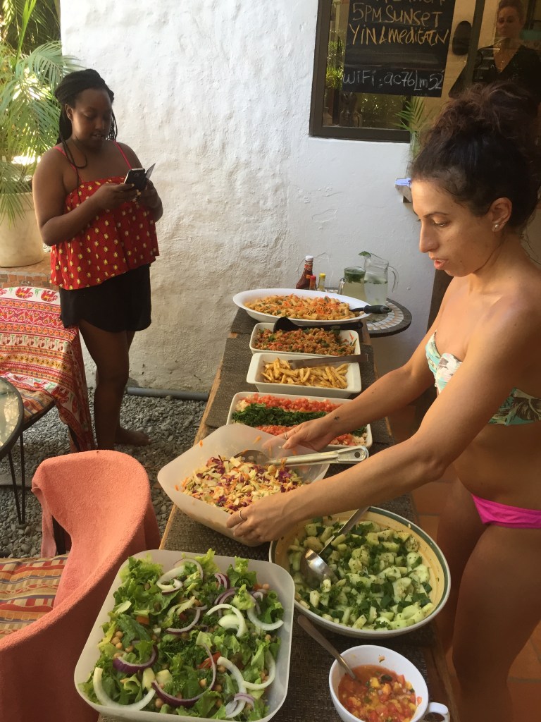We collaborated with women who’ve inspired us from fitness coach (and our sister!) Tiny T to our long time good friend and event coordinator Tiffany, our precious friend and dance teacher extraordinaire Sabrina (The Duchess) Delduca, Steph la love witch on reiki and yin yoga, Heidi ran the kitchen with the help of Vicky and Melissa, creating beautiful plant based spreads for us, and more.