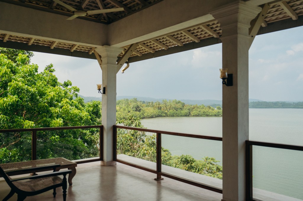 Spacieuse, lumineuse, avec immense balcon sur le lac Koggala. Lit king + 2 lits superposés, grande salle de bain avec double douche & lavabos, ventilation naturelle (AC dispo).